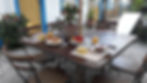 -Café da manhã: café, chá, leite, achocolatado, iogurte, queijos, manteiga, queijo cremoso, embutidos, pães, frutas, biscoitos, aveia, granola, sucos naturais, bolos, doces e geleias caseiras preparadas com receitas típicas da região servidas num quiosque em meio ao jardim cercado de flores, redes e espreguiçadeira;